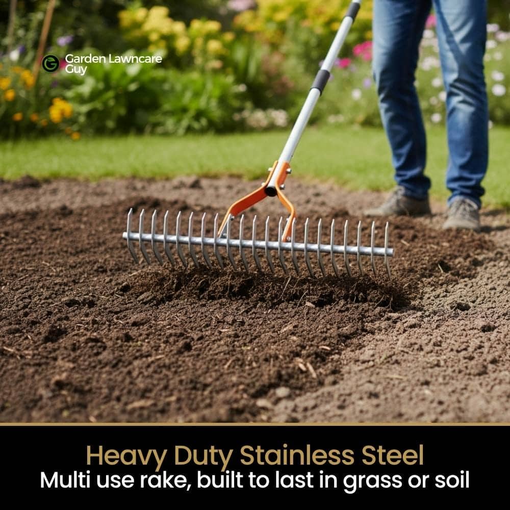 Built from premium stainless steel, the rake is designed for durability and strength. It features an anti-rust and anti-corrosion coating, preventing wear and extending its lifespan.