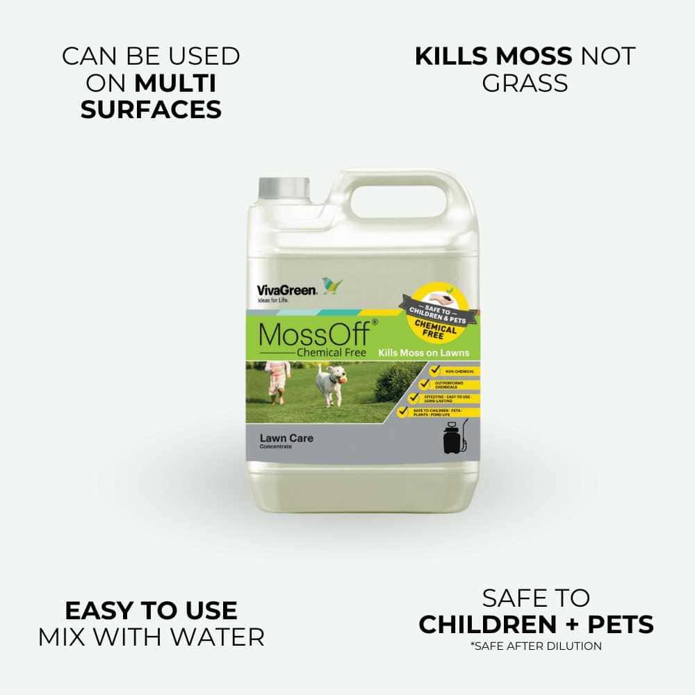 MossOff® is a revolutionary lawn and multi surface moss killer that effectively eliminates and prevents moss growth. Recognised as one of the safest and most advanced products, it ensures long-lasting results and user safety, delivering comprehensive moss control.